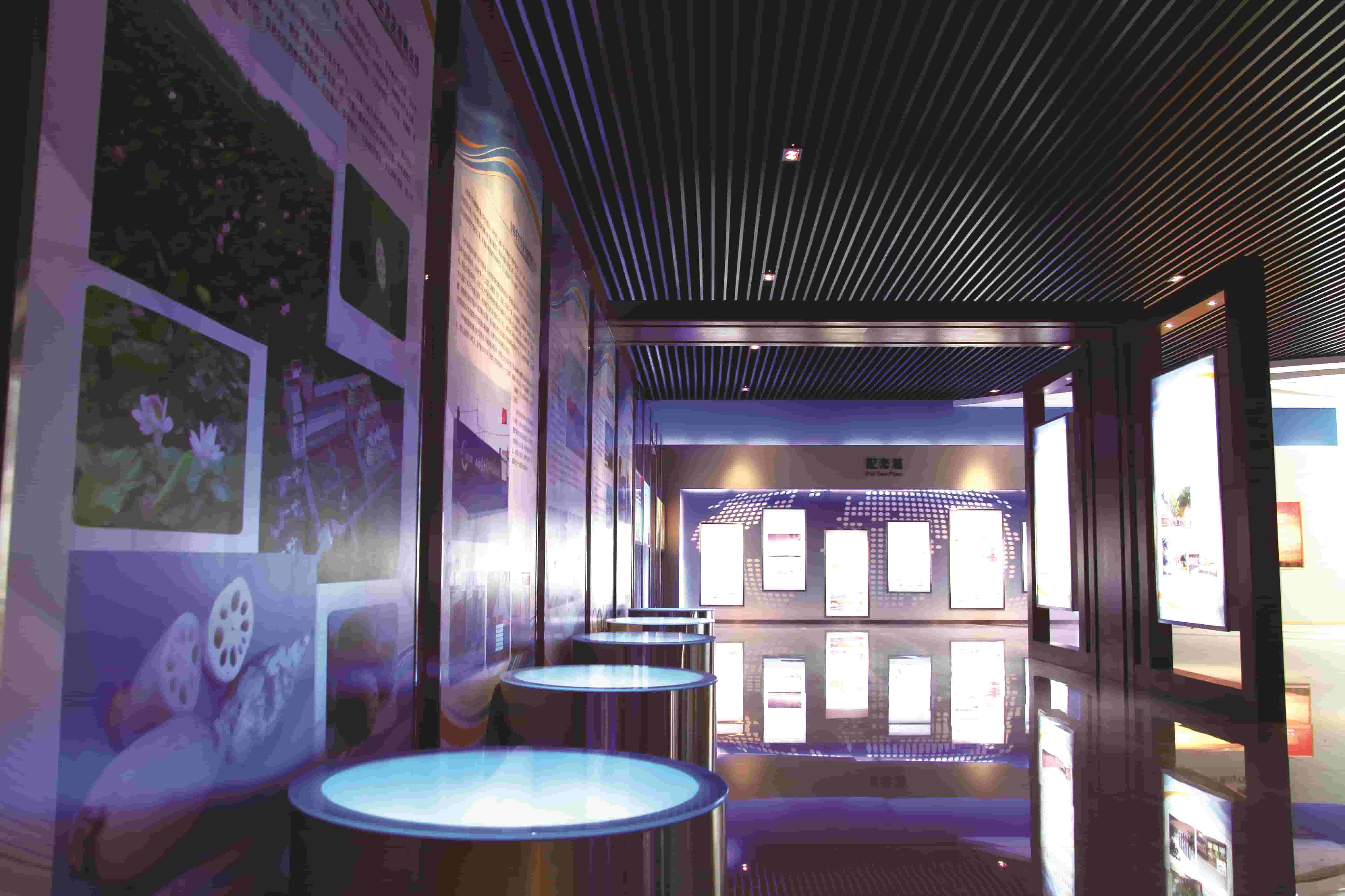 临汾·甘亭新型工业园区规划展览馆的展厅运用蓝色作为展厅环境色,体现新型工业园区的香蕉视频黄色免费在线观看感。具有生命力的波浪状向上推进企业形象墙,沙盘顶部的概念性吊顶装饰,和黑色镜面点缀的展墙,营造了良好的视觉效果,同时也体现了园区飞速发展的美好愿景。
