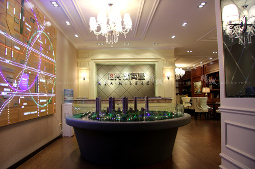 走进品牌中心,迎面扑来一股浓浓的英伦气息,墙上四幅英伦风情的油画,好像在诉说着来自英国的故事;旁边海亮地产布局全国的地图展示,走过25座城市的灯光标记,如同璀璨的星彩,映照着万般的奢靡和流丽的魅影。