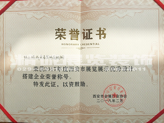 2018年3.20香蕉视频网站在线观看展览装饰荣获西安市展览展示优秀设计 、搭建企业称号