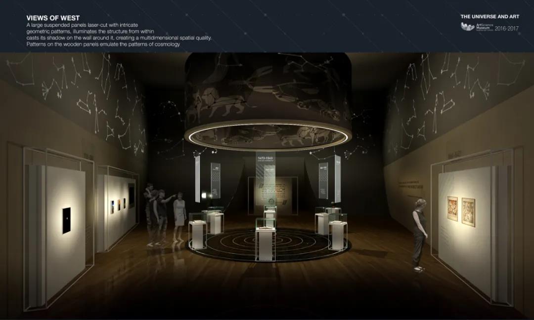 第一个要探索的主题是很久以前对宇宙的看法。参观者被欢迎进入一个由mandalas的图画创造的宇宙舞台,在展厅的中心焦点周围的星座。