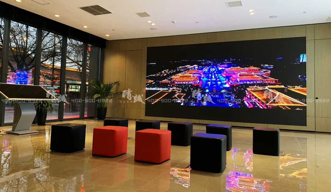 游客休息区的拼接大屏播放着曲江新区精彩纷呈的文旅项目影片,一遍遍地释放着这座城市无与伦比的文化魅力。