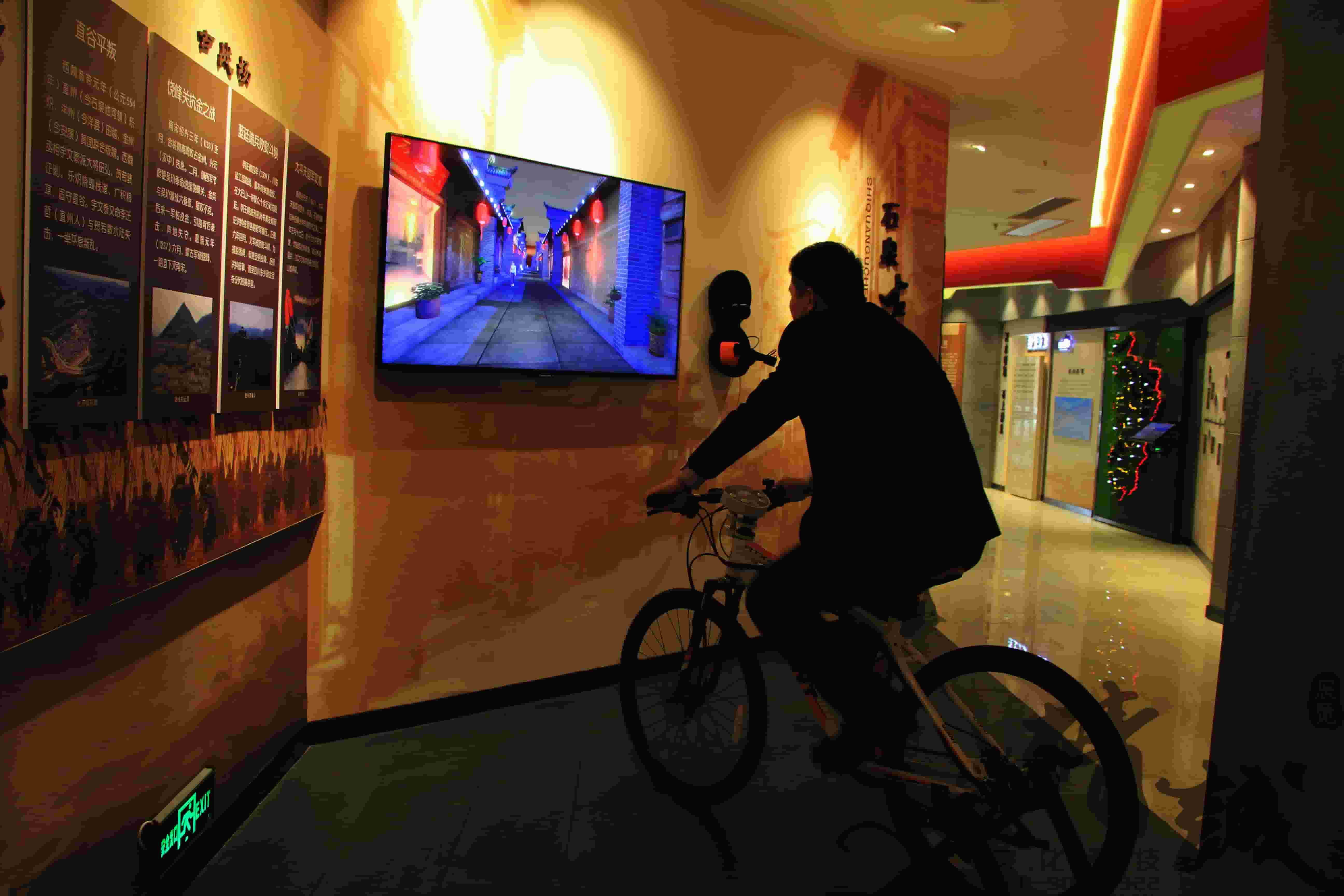 此外该展区采用单车虚拟漫游系统,参观者戴上VR眼镜,通过踩动单车石泉明清古城就可能够直接展现在观者面前,全方位沉浸式还原古城夜景,尽情领略千年古城之美。