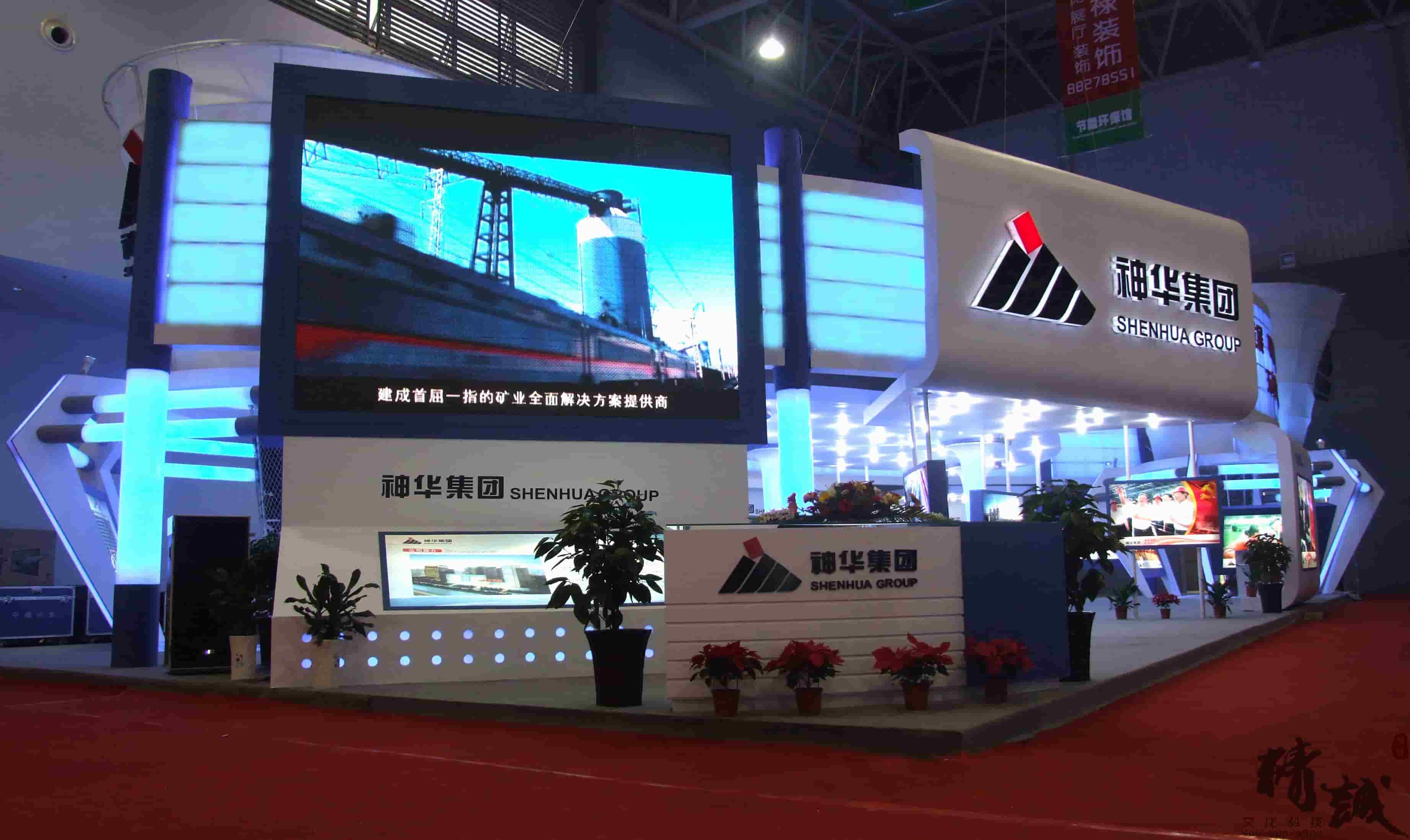 神华集团的展览展示设计在满足空间功能需求的前提下,运用现代、明快的设计语言,体现了建筑空间的层次感和和视觉的感染力。整体空间运用大面积的软膜饰面,结合灯带流线型的光感表现手法是展台视觉体现的一大亮点。展台中,“煤”的真实还原,贯穿整个展台起到了点睛之笔的重要。是企业的灵魂及价值体现。在整个立体空间,金属丝网的巧妙设计,“硕果累累”的煤石如同一个核心支柱,铿锵有力,“直上云霄”。
