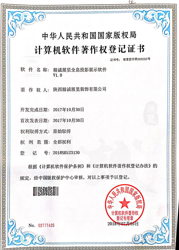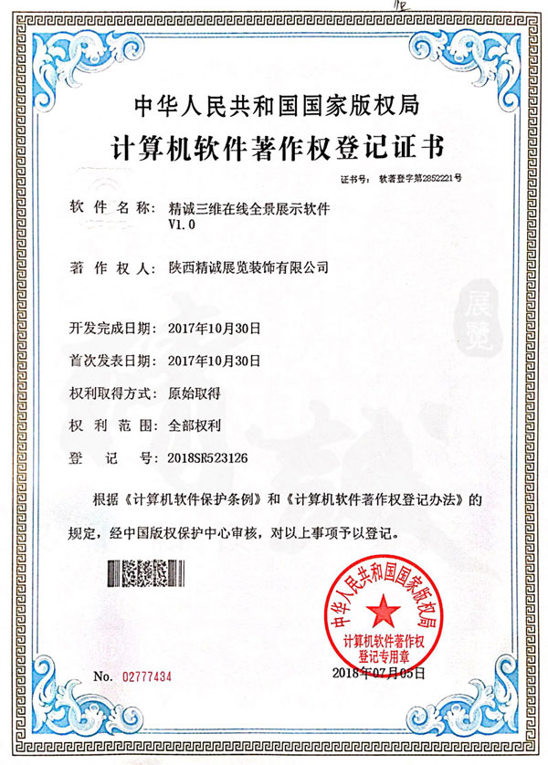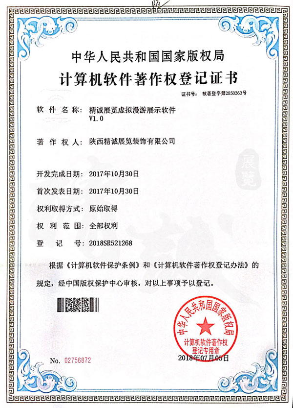 - 陕西香蕉视频网站在线观看展览装饰有限公司计算机软件著作权登记证书 -